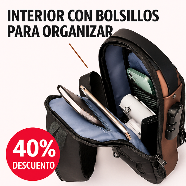 Con MochiSafe, tu móvil siempre estará cargado gracias a su puerto USB integrado. La vida moderna demanda estar conectado, y esta mochila lo hace posible sin buscar enchufes.